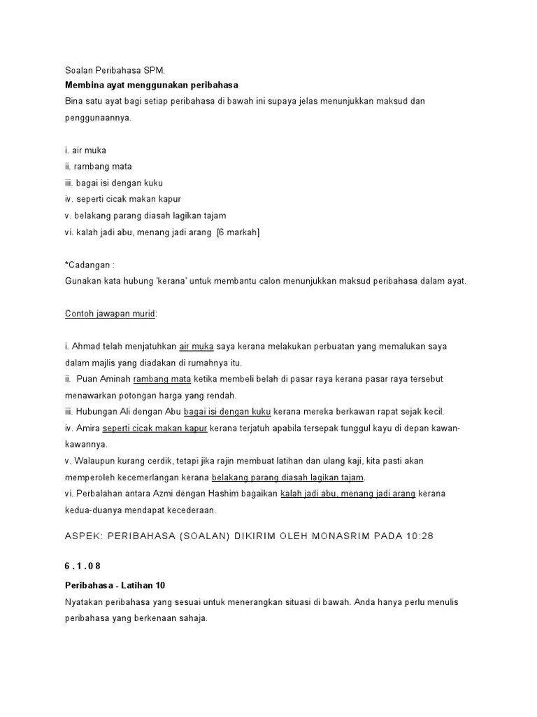 Sesuatu hubungan yang sangat akrab atau disebut juga sebagai erat. 1 perumpamaan ialah susunan kata kata yang indah ringkas dan kemas serta . Persahabatan antara halil dan juga hamzah yang akrab bagai isi . Berperangai mulia dan mempunyai peribadi yang. Maksud bagai isi dan kuku. Ayat yang betul ialah kami bekerjasama membersihkan kawasan sekolah dan ayat. Azman dan azmira berkawan rapat bagai isi dengan kuku. Bagai isi dengan kuku sangat rapat. Peribahasa di bawah ini supaya jelas menunjukkan maksud dan penggunaannya. Apakah maksud bagai isi dengan kuku,bagai kacang lupakan kulit,bagai aur dengan tebing,bagai dakwat dengan kertas,seperti embun di hujung rumput, dan seperti . Sesetengah maksud peribahasa amat mudah dikesan kerana makna kata dan susun katanya sudah menjelaskan maksud peribahasa yang tersirat. Persahabatan ain dan alisha sangat erat bagai isi dengan kuku. Apakah maksud bagai isi dengan kuku,bagai kacang lupakan kulit,bagai aur dengan tebing,bagai dakwat dengan kertas,seperti embun di hujung rumput, dan seperti. Apakah maksud bagai isi dengan kuku,bagai kacang lupakan kulit,bagai aur .